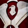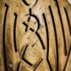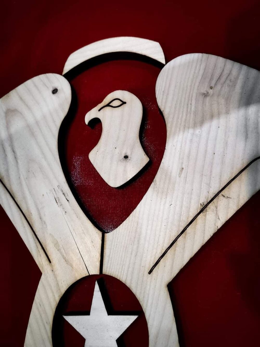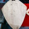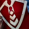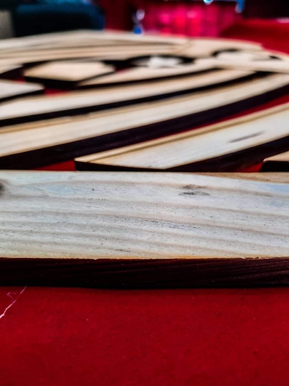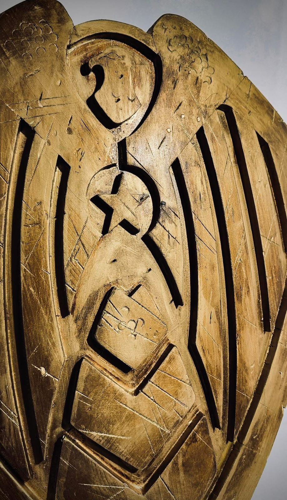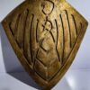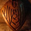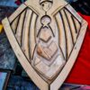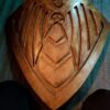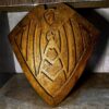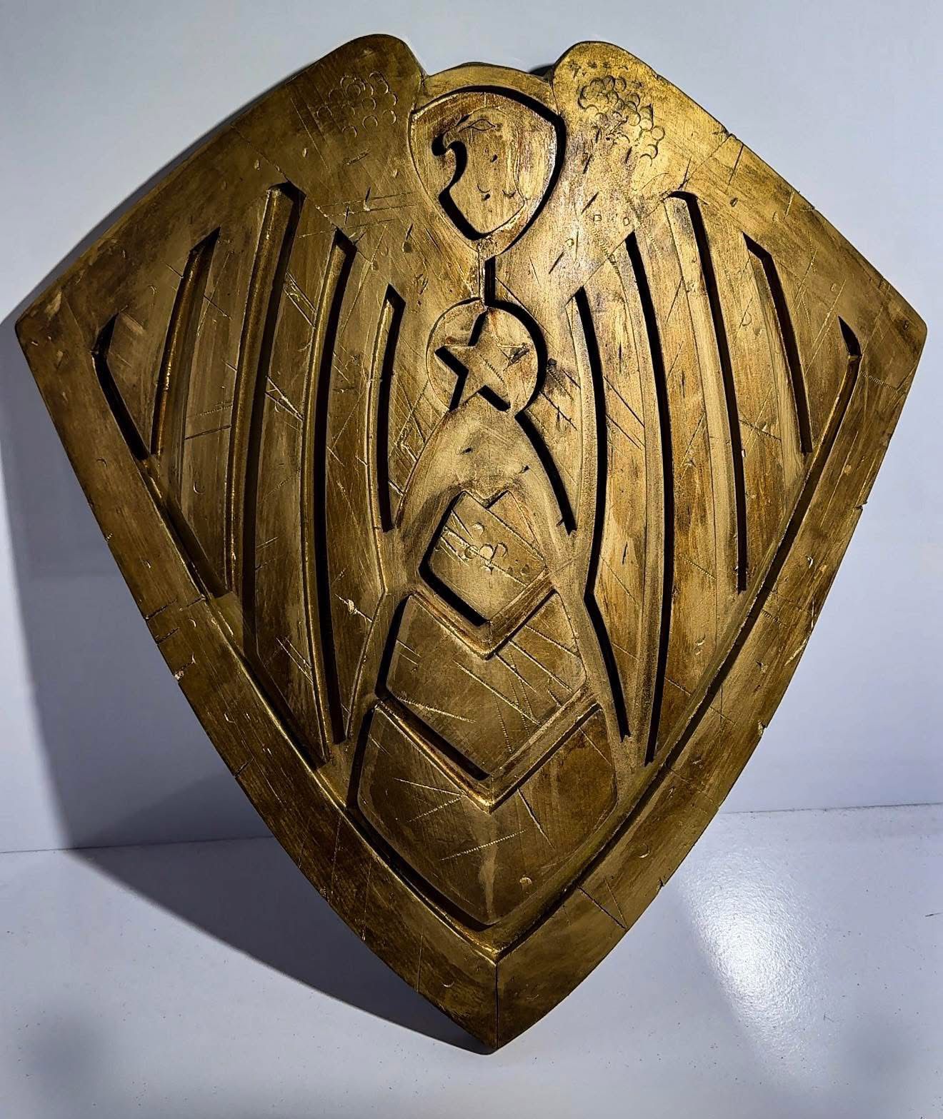 Each shield begins with a curved solid wooden base, shaped to achieve accurate depth and contour. The dimensional elements are not printed or stamped. Every individual component is crafted separately from wood, hand-shaped, refined, and carefully installed onto the base to recreate the raised structure and layered geometry seen on screen.
