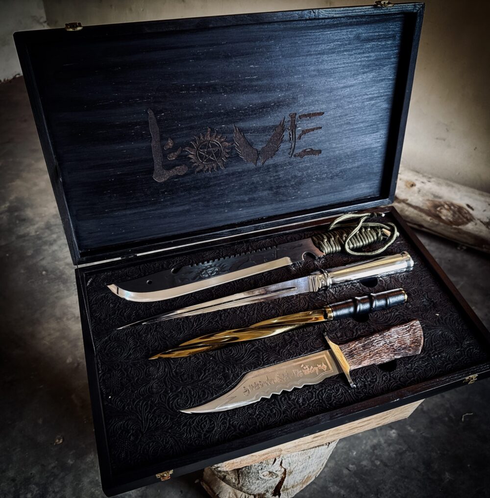 A complete four-blade collector’s presentation, inspired by the most iconic weapons from Supernatural and crafted in full-scale, real metal construction.
